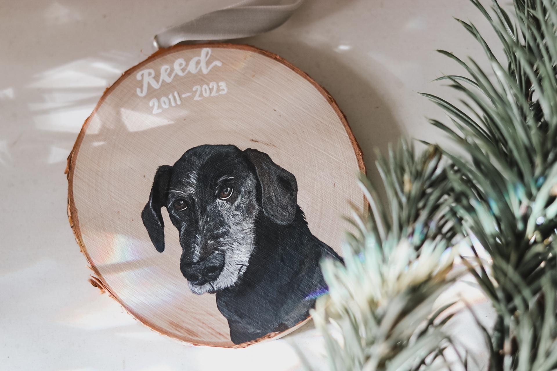 *The wood slice is an unfinished tree slice while the farmhouse disc has a beveled edge, is stained and perfectly round