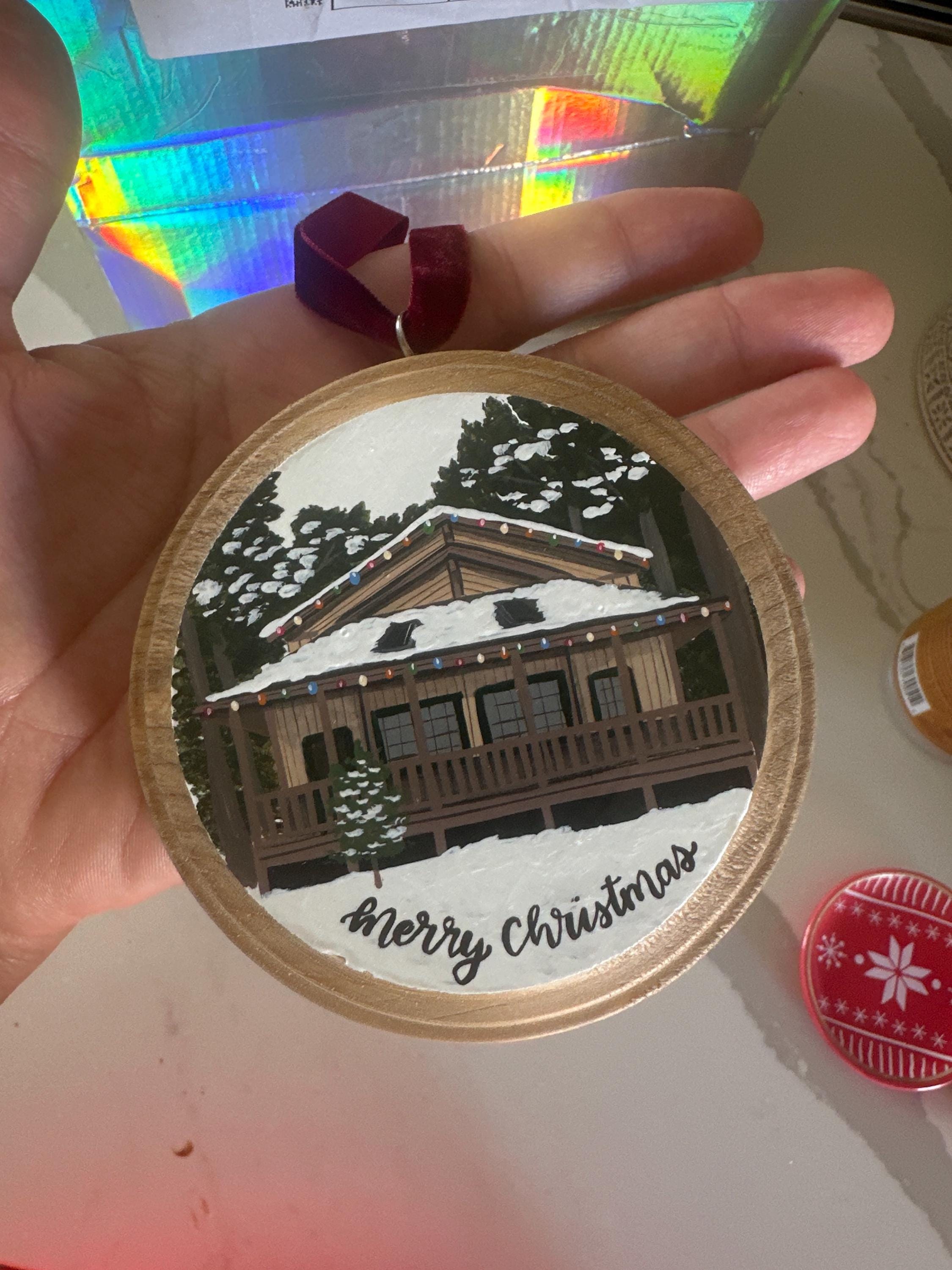 Absolutely thrilled with the way these custom ornaments turned out! We grew up going to this cabin for the holidays and this is such a special way to remember those happy memories! Chelsea was wonderful to work with- extremely patient and kind- and worked with me to get all the little details right. I truly cannot recommend her enough!