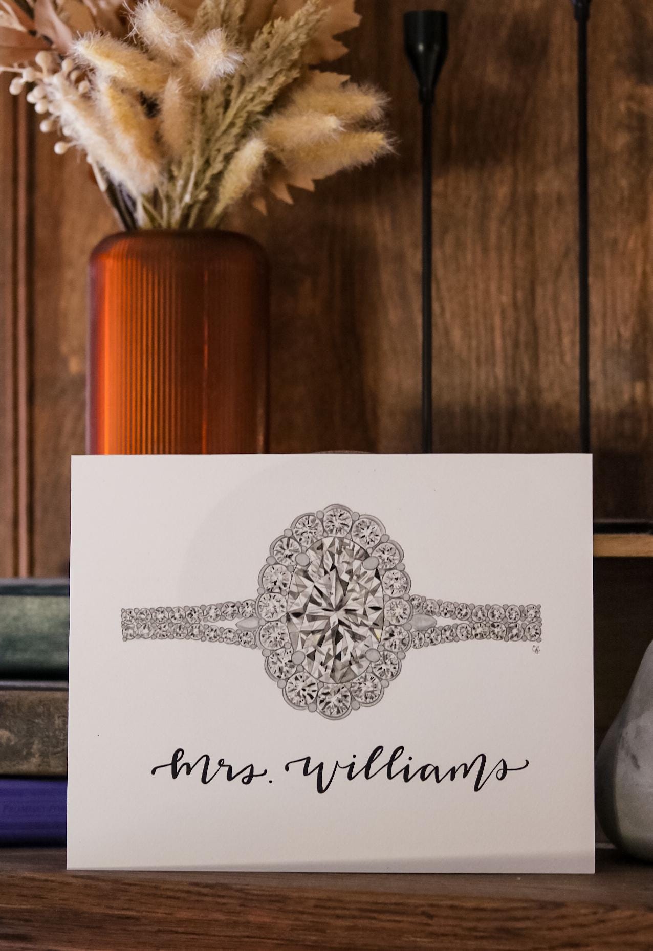 This sweet little sentiment is the perfect piece of art to add to your collection! These make the most unique bridal gifts as well. HAND PAINTED on 140 lb watercolor paper, down to every last detail, this piece will become as precious to you as the person who gave you your bling! Ready to frame with or without a matte. Since 2015, this is the original ring portrait!
