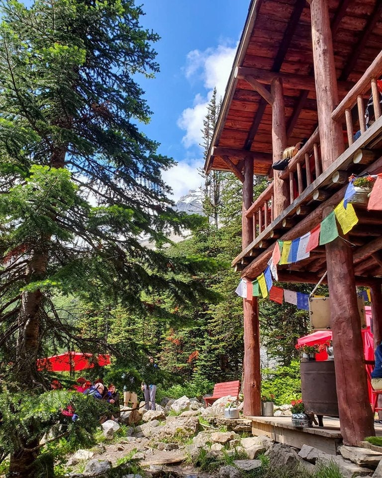 The hike(s) we did this day were the longest and hardest but so rewarding and beautiful! We did the Fairview Lookout trail with our photographers (1.5 miles) first and after that we got changed (they have nice public bathrooms..and by nice I mean they are inside and the toilet flushes haha) and got started on our long hike around 10:30am. The Plain of Six Glaciers Trail is 8.6 miles and starts just to the right of the lake. This trail is listed as moderate but I highly recommend bringing along hiking sticks to help with your footing throughout the trail. There is one section that goes along a cliff and we passed a few people afraid of heights clinging onto the edge..it was not me this time but still a bit scary. Once you reach the tea house, you're almost to the glacier and you can stop and have a nice meal. This place was such a cool experience! They have no electricity or running water. Because of this, they start off each season getting supplies flown in by helicopter and use horses to bring in the rest throughout the season. For this reason they are cash only (no service for credit card readers). The staff does 5 day shifts, staying up there until the end of their shift and hike down. Talk about a commute!! Any trash you use while there (including banana peels and coffee cups) you have to hike down with and dispose of it yourself to eliminate the workers having to carry a bunch of garbage down with them. The hike took us around 7 hours (we stopped A LOT to take pictures, eat, breathe, and we kept going to the glacier another mile or so) but this seemed to be the normal amount of time per the All Trails app. If we ever make it back I think I would try to knock out the Big Beehive trail but our legs could not take another 6.5 miles. We got back to the Fairmont and the crowd seemed to grow since we started so always get an earlier start at these places! If you are in need of a snack again after your treck down, you can walk into the Fairmont and they have a yummy little cafe! After that we headed to Canmore for dinner and waddled to the hot tub to relieve our muscles (nightly tradition). We opted for going to bed early each night because A.) we were worn out and B.) early bird beats the tour buses ;)